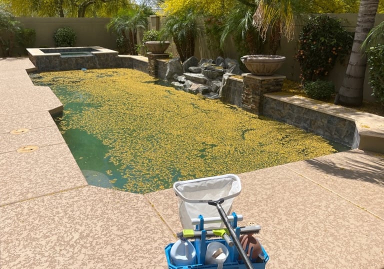 Pool cleaning will always include a thorough brushing of the steps walls and tile line, emptying all skimmer, pump, and pre filter baskets, skimming the surface and floor with a net, and checking and balancing chemicals, done by me personally.